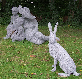 The stunning wire sculpture of the highly talented Helen Godfrey. Here she is with her chickens: